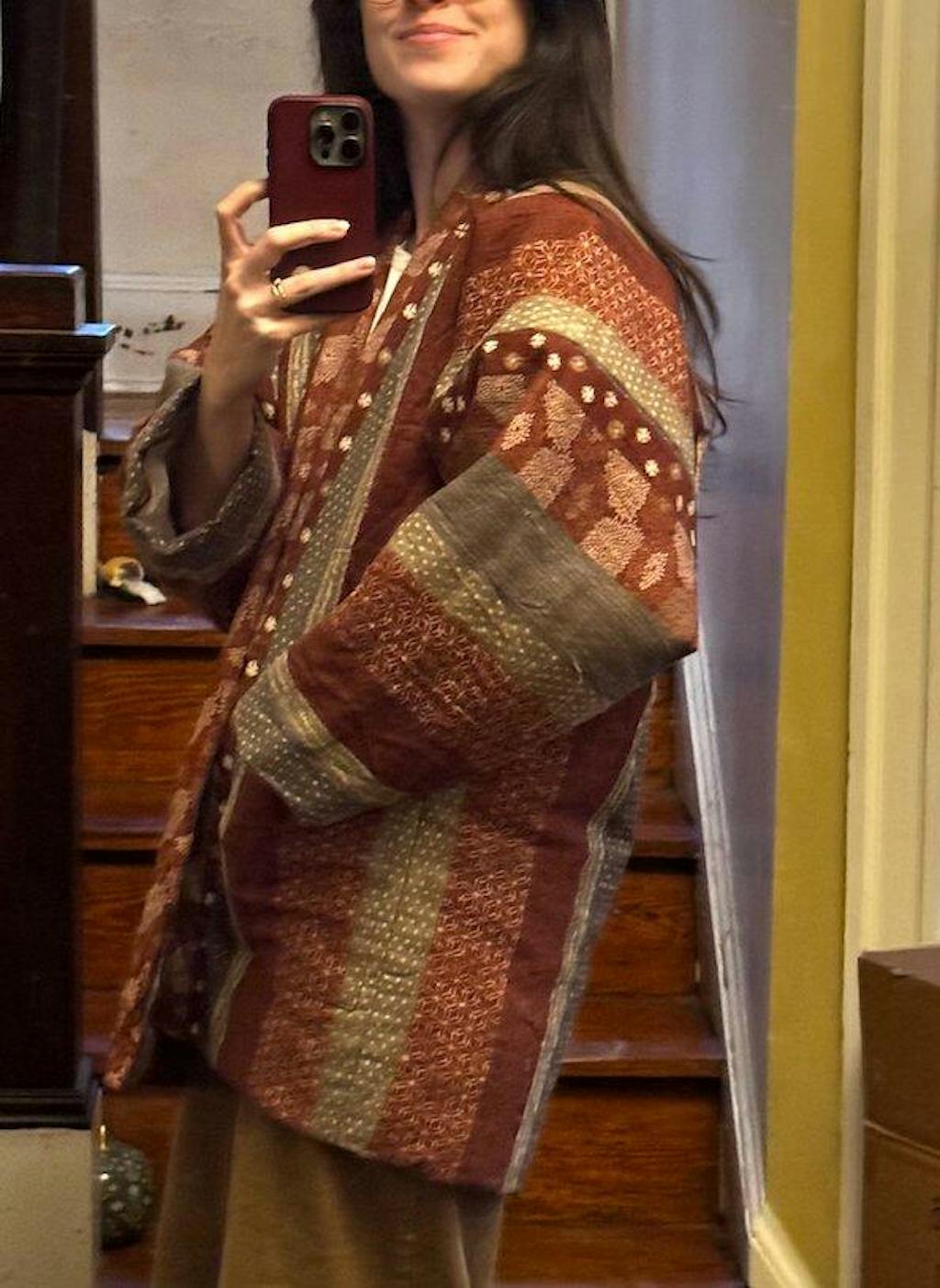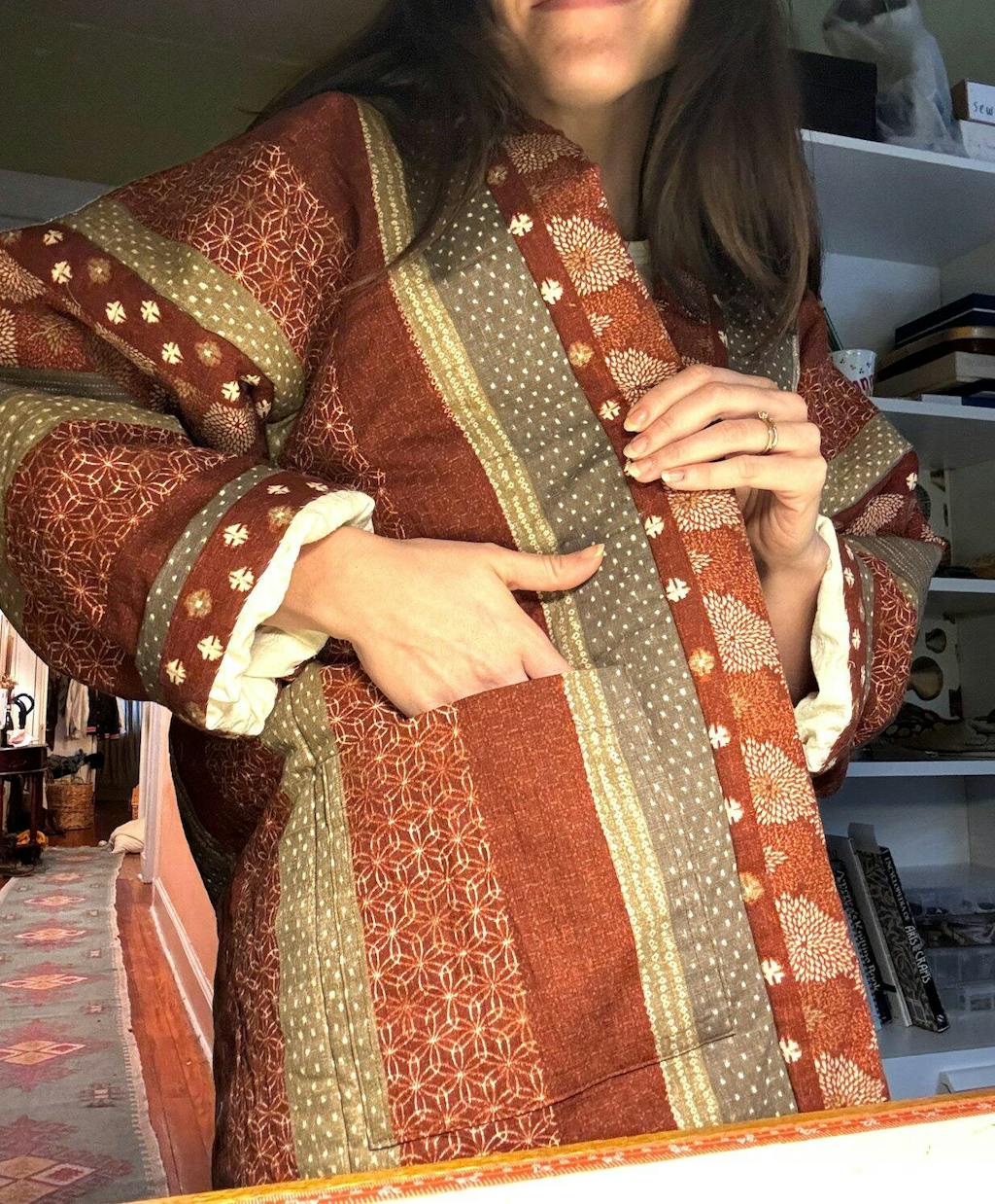 made myself a nice cushy hanten - it turned out so well I'm planning to make one for my mom! I'm a native english speaker with very, very basic Japanese skills and was able to interpret the pattern just fine (even learned some new terms). Sizing is spot on and very adjustable. I made mine with cotton dobby, wool sheet batting and a soft cotton lining - it's exactly the garment I want to be lolling around the house in!