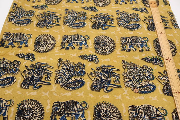 Made in India Cotton Kalamkari Printed Fabric - Bird and Elephant