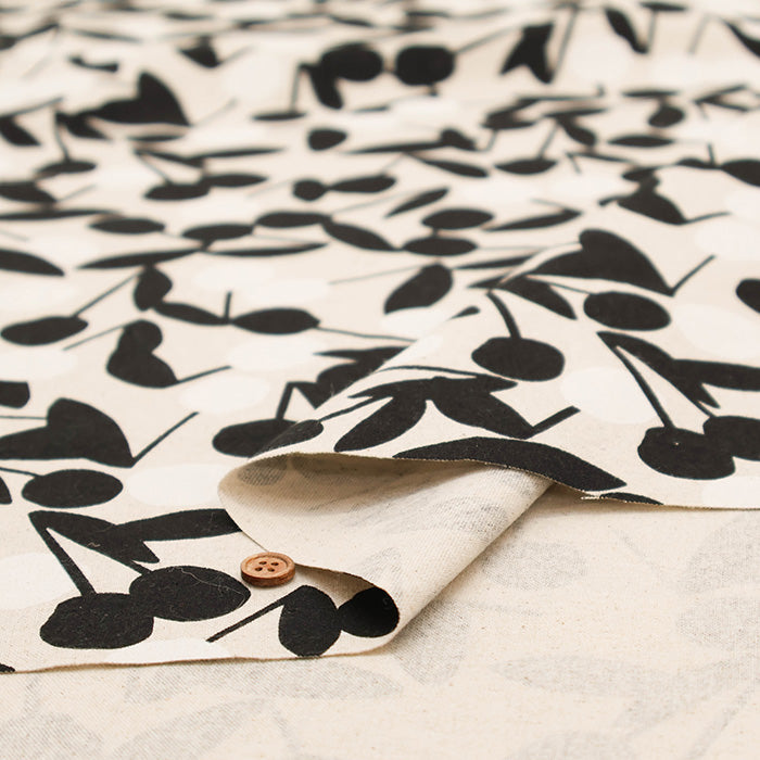 C/L Canvas Print Fabric - Cherry Pom Pom