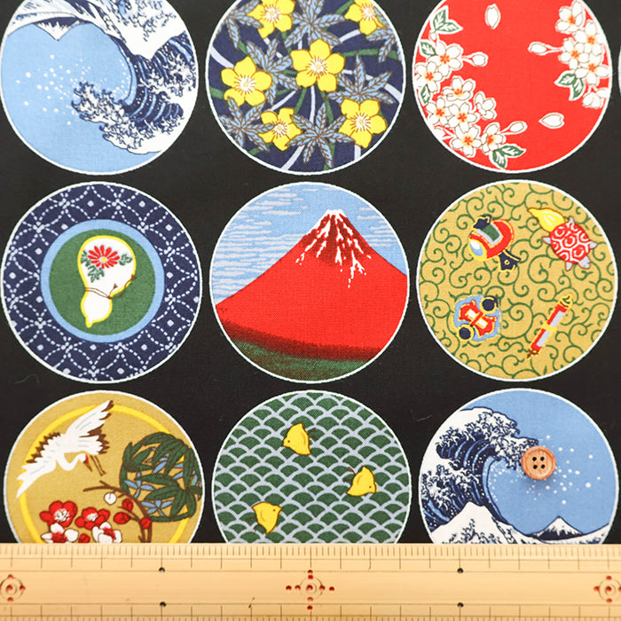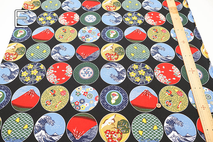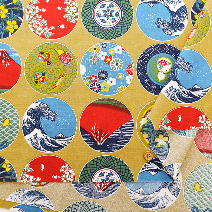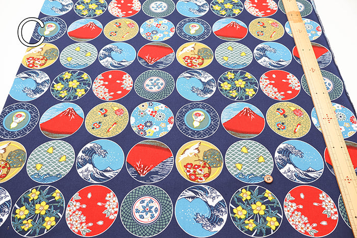 Cotton Muslin Printed Fabric - Japanese Dish Style