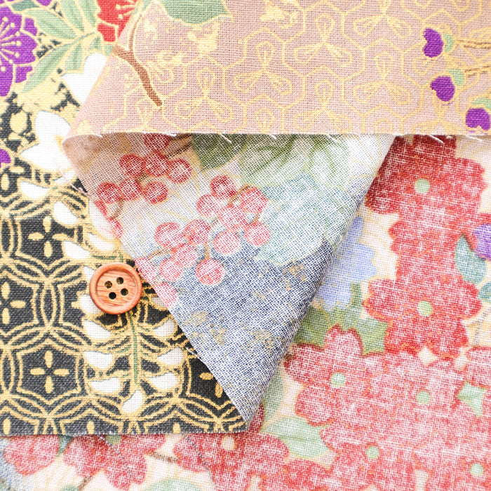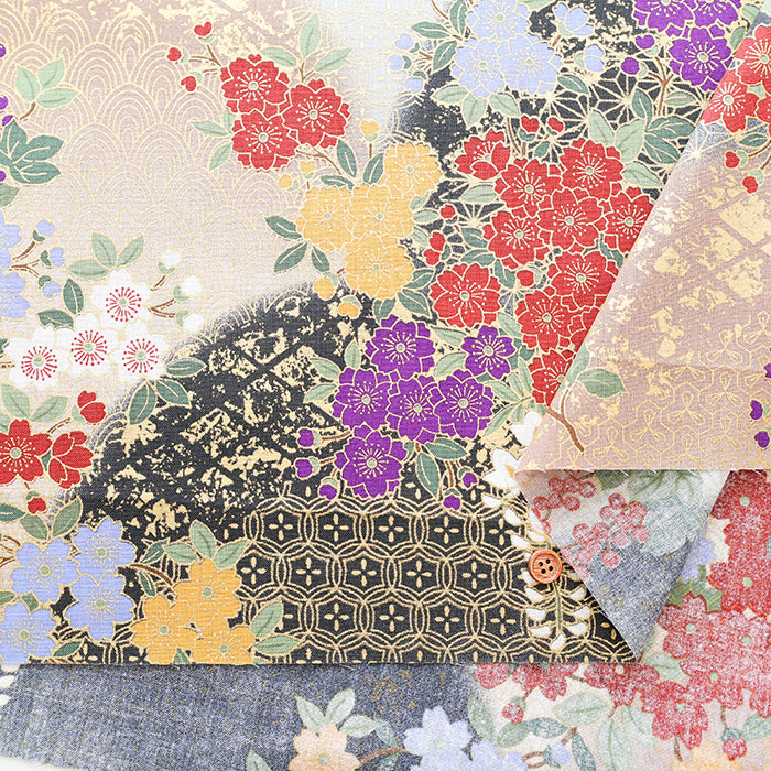النسيج القطن شاشن عرجاء (بريق) - الأزهار على الطراز الياباني