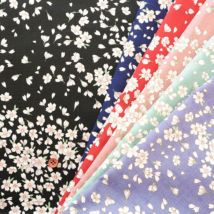 Cotton Dobby Printed Fabric - Japanese-style Cherry Blossoms