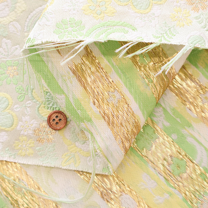 Kinran is a type of weaving in which gold and silver threads are mixed with colored threads as weft, and woven in such a way that a pattern emerges.
