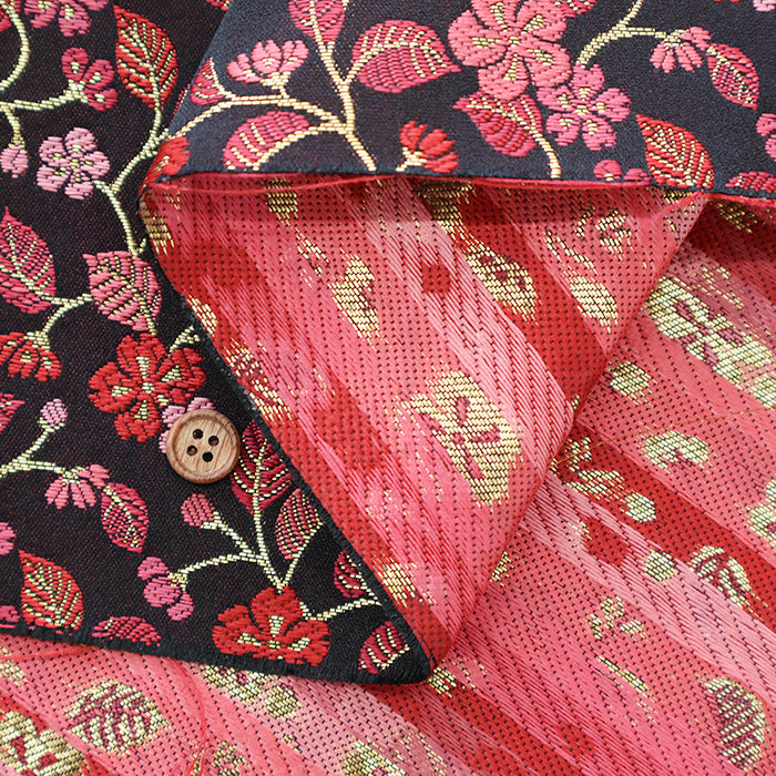 Kinran is a type of weaving in which gold and silver threads are mixed with colored threads as weft, and woven in such a way that a pattern emerges.