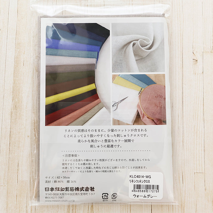 An embroidery cloth that maintains the soft texture of linen while the inclusion of cotton improves needle penetration and makes sewing easier.