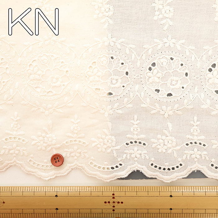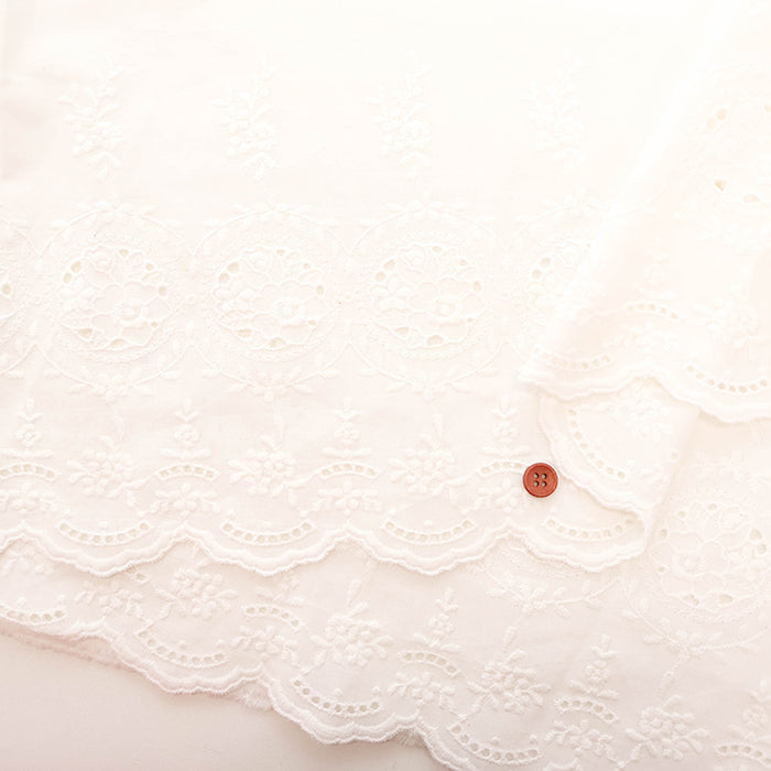 *This is a border lace fabric with a scalloped selvage on one side. Please take care when estimating the required yardage.