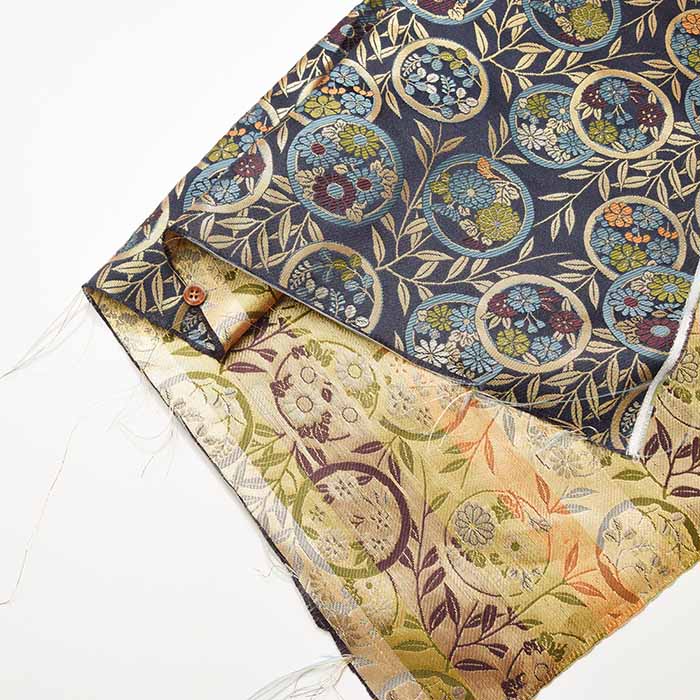 Kinran is a type of weaving in which gold and silver threads are mixed with colored threads as weft, and woven in such a way that a pattern emerges.