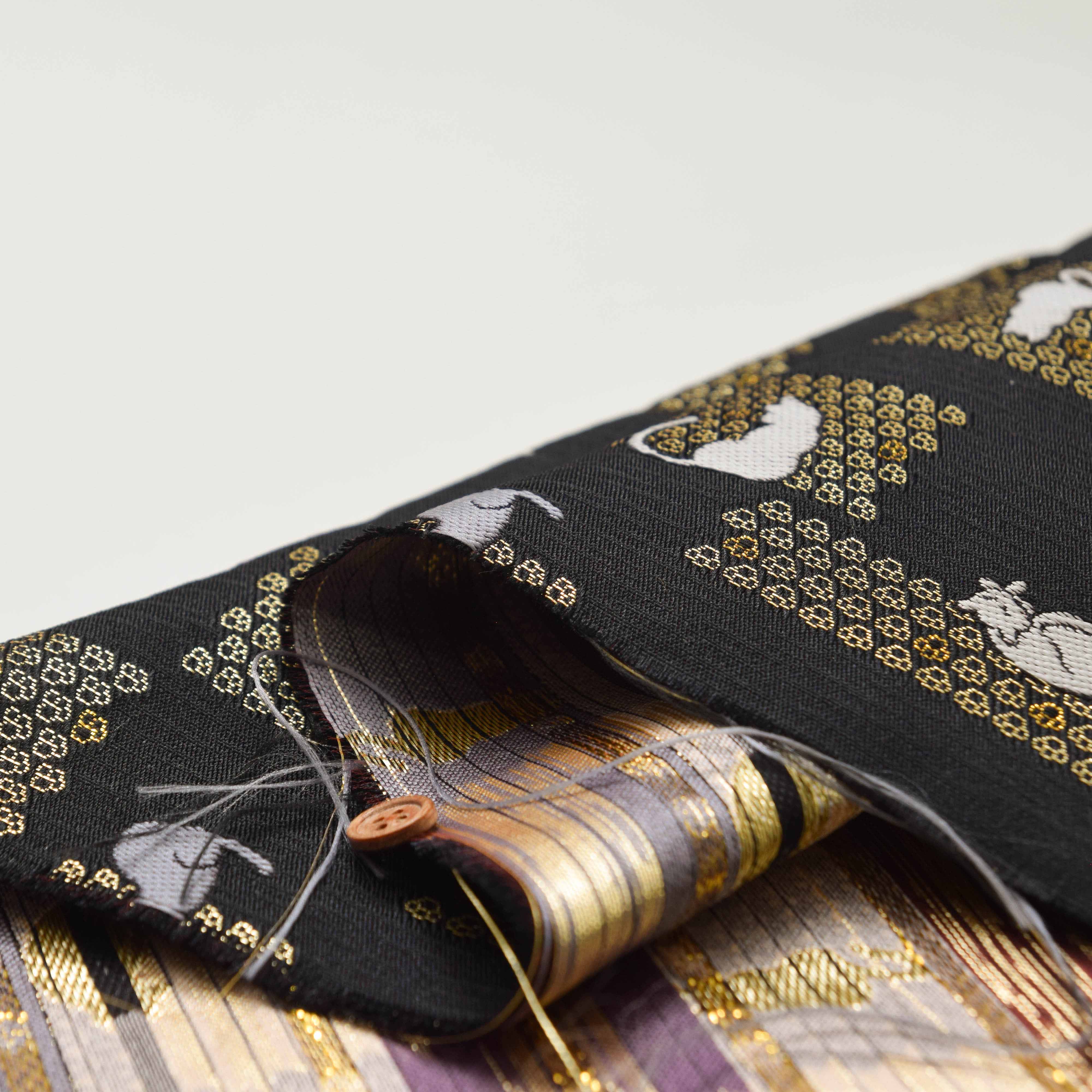 Kinran is a type of weaving in which gold and silver threads are mixed with colored threads as weft, and woven in such a way that a pattern emerges.