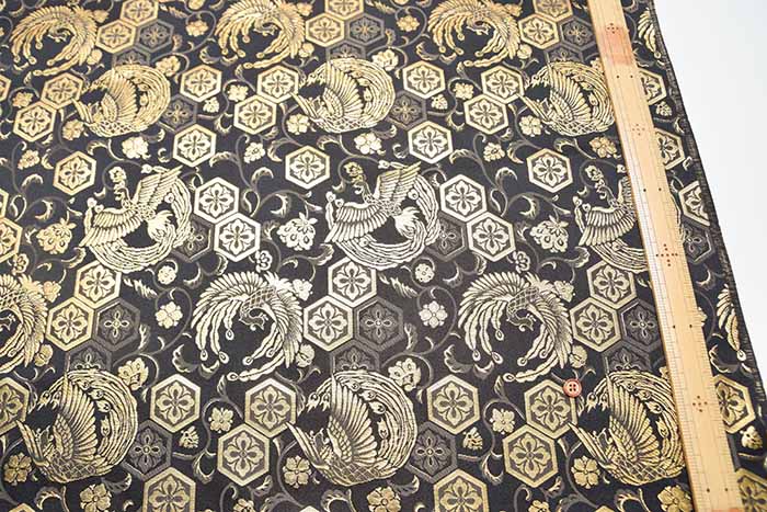 Gold Brocade (Kinran) - Turtle Shell Pattern with phoenix