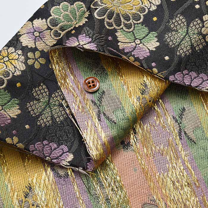 Kinran is a type of weaving in which gold and silver threads are mixed with colored threads as weft, and woven in such a way that a pattern emerges.
