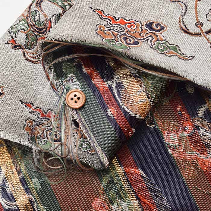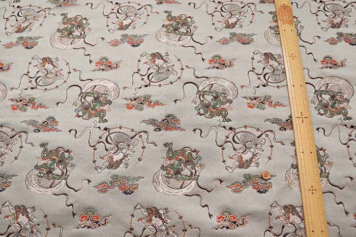 Kinran is a type of weaving in which gold and silver threads are mixed with colored threads as weft, and woven in such a way that a pattern emerges.