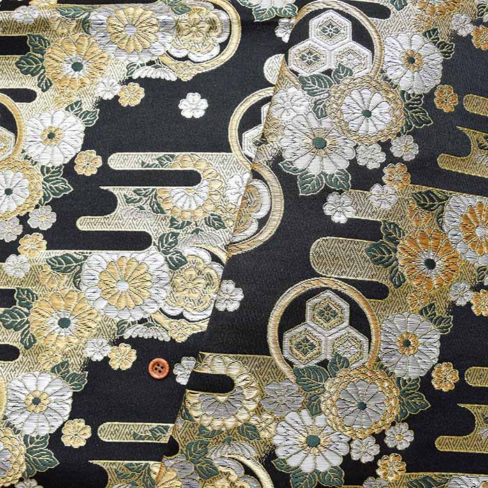Kinran is a type of weaving in which gold and silver threads are mixed with colored threads as weft, and woven in such a way that a pattern emerges.