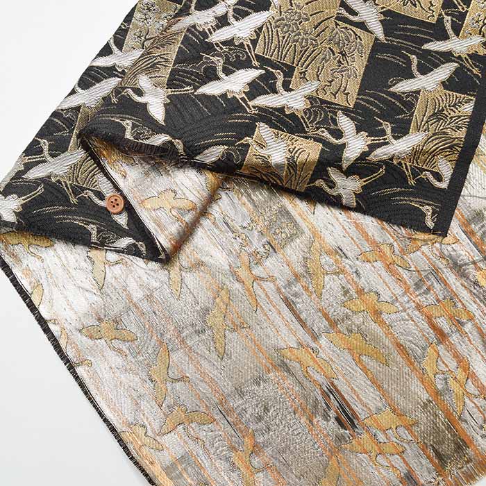 Kinran is a type of weaving in which gold and silver threads are mixed with colored threads as weft, and woven in such a way that a pattern emerges.