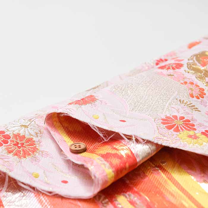 Kinran is a type of weaving in which gold and silver threads are mixed with colored threads as weft, and woven in such a way that a pattern emerges.