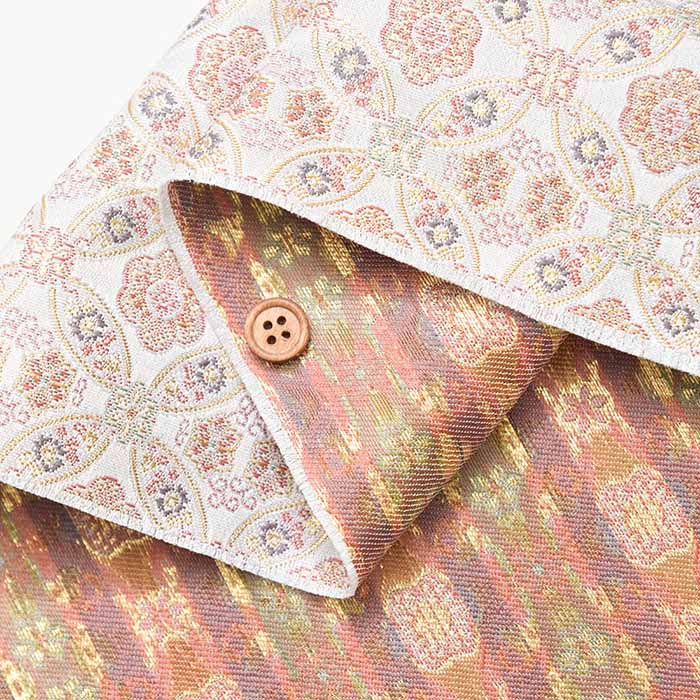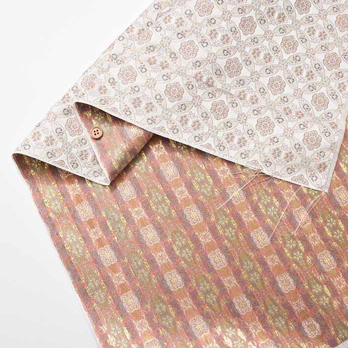 Kinran is a type of weaving in which gold and silver threads are mixed with colored threads as weft, and woven in such a way that a pattern emerges.