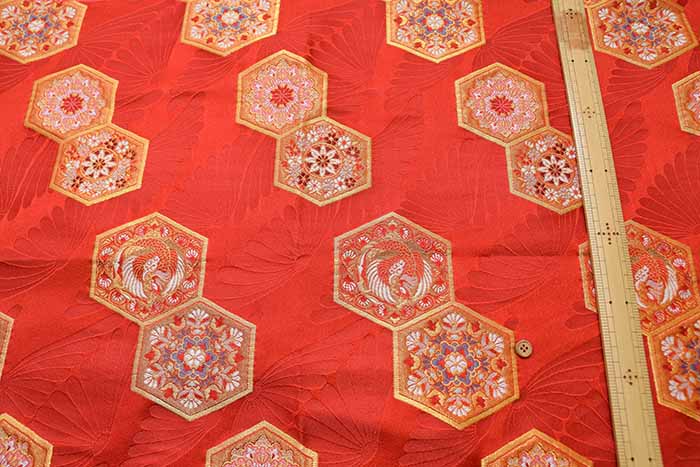 Kinran is a type of weaving in which gold and silver threads are mixed with colored threads as weft, and woven in such a way that a pattern emerges.