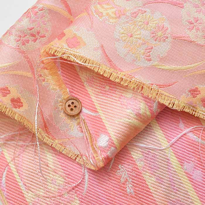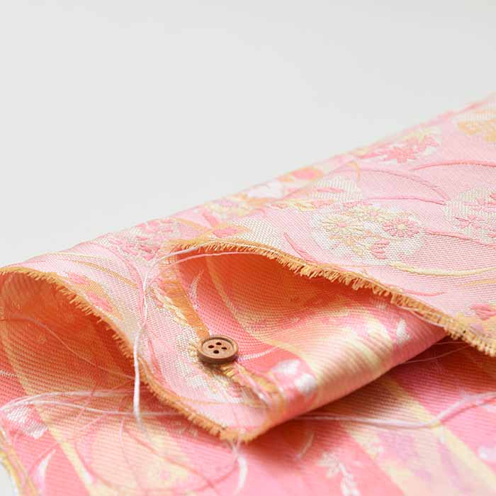 Kinran is a type of weaving in which gold and silver threads are mixed with colored threads as weft, and woven in such a way that a pattern emerges.