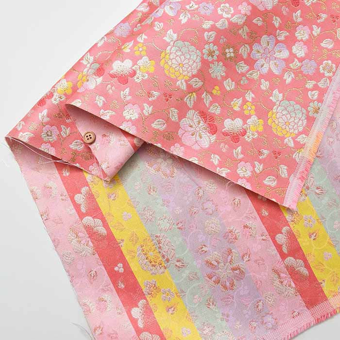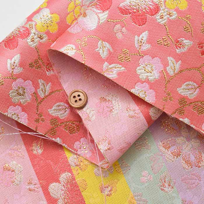 Kinran is a type of weaving in which gold and silver threads are mixed with colored threads as weft, and woven in such a way that a pattern emerges.