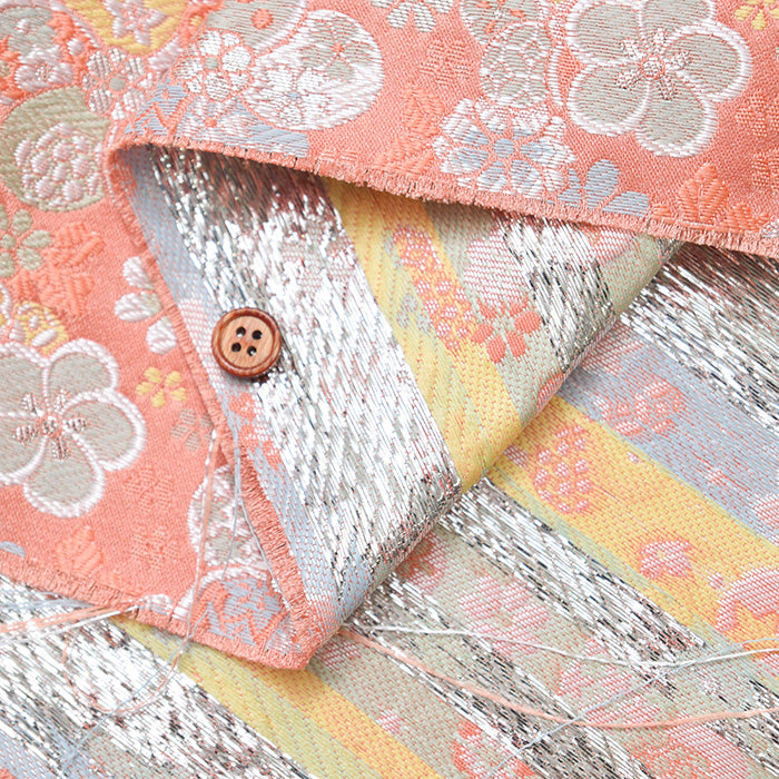 Kinran is a type of weaving in which gold and silver threads are mixed with colored threads as weft, and woven in such a way that a pattern emerges.