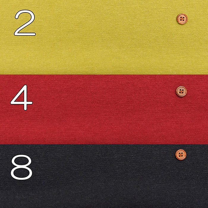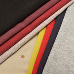 Jersey, also known as “stockinette stitch,” is a basic knit pattern with vertical ridges on the front and a rougher texture on the back. This fabric is made from a blend of acrylic and wool, making it slightly thicker than cotton jersey.