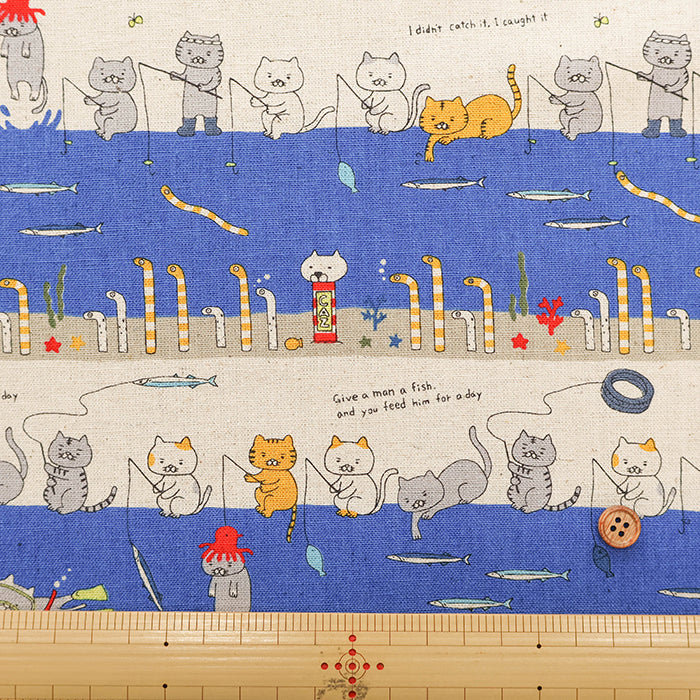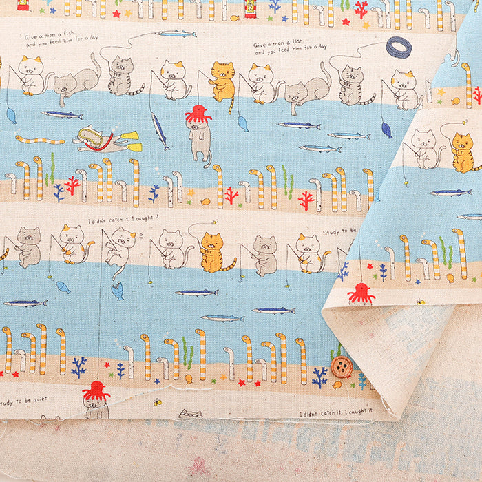 C/L Canvas Print Fabric - Fishing Cat feat. Garden Eel
