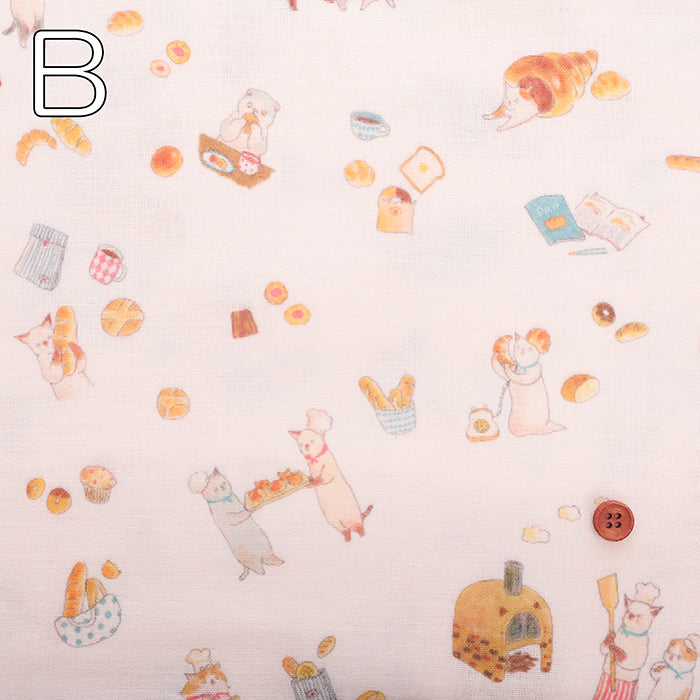 Cotton Double Gauze Inkjet Print Fabric - Fabric Shop in Wheat Forest - Freshly Baked Bread Shop Cat