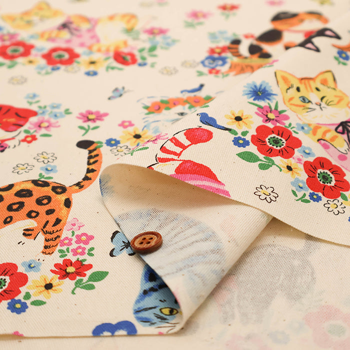 Cotton Oxford Fabric - Powerful animal Flower Cat