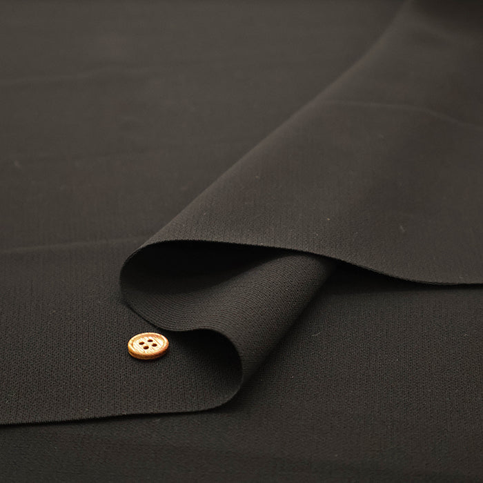 Made of polyester, it is smooth, wrinkle-resistant, and recommended for tops, skirts, and other apparel.