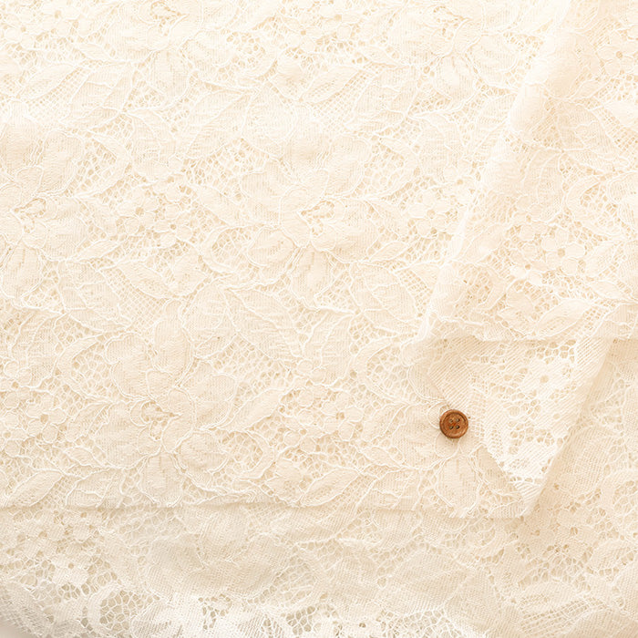 This lace fabric is made using a Raschel lace knitting machine, creating patterns as it is knitted.