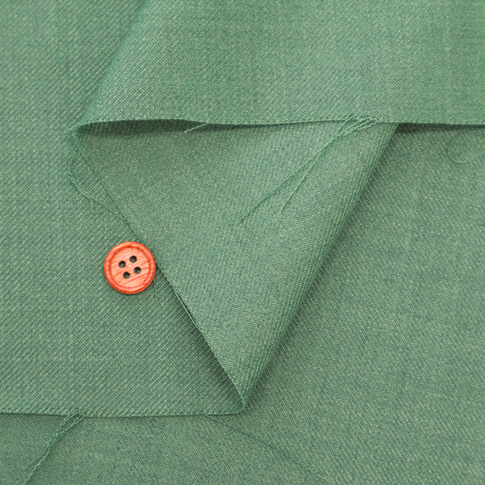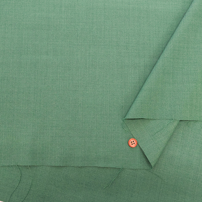 A polyester-wool blend twill fabric with stretch.