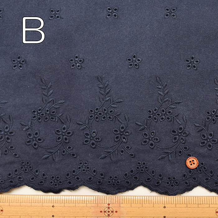 *Please note: Since the scalloped lace is on one selvage only, using the lace for hems will require reversing the fabric’s lengthwise and crosswise directions. Be mindful of this when estimating fabric usage, as it may differ from usual.
