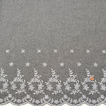 This material features scalloped embroidery on one selvage, adding a delicate touch. It offers a soft and supple texture with a pleasant feel against the skin.