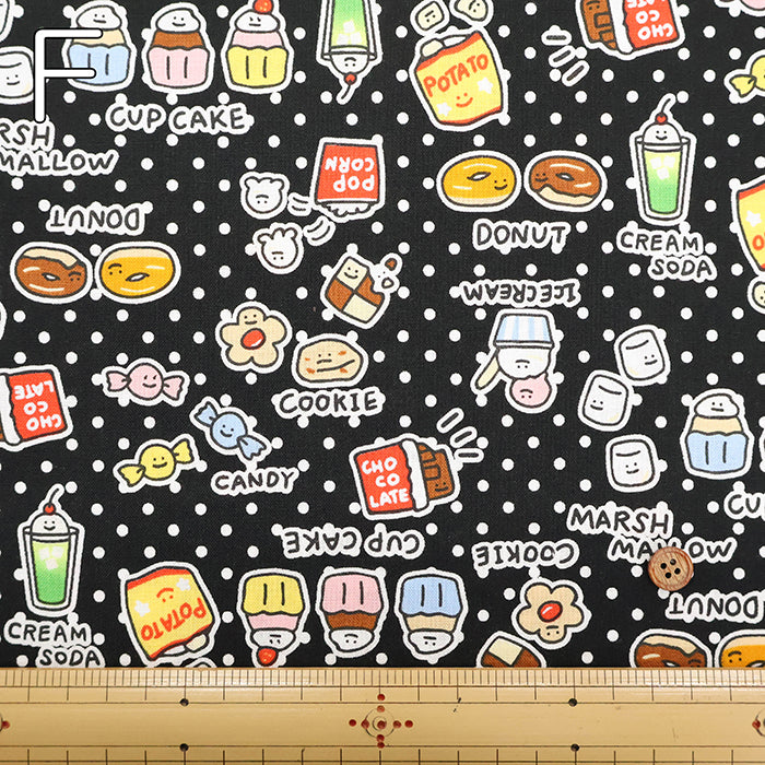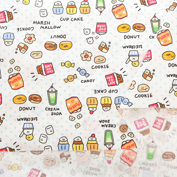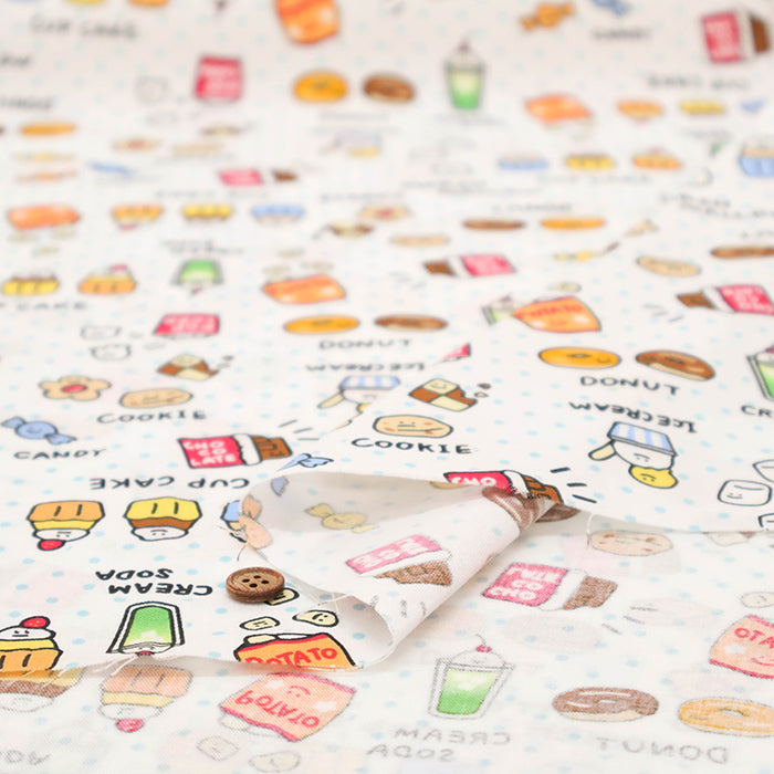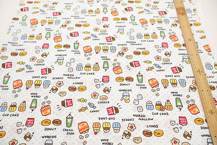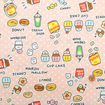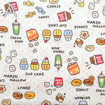 Cotton Muslin Print Fabric - MAHO - food yuru Cheerful Sweets Pattern
