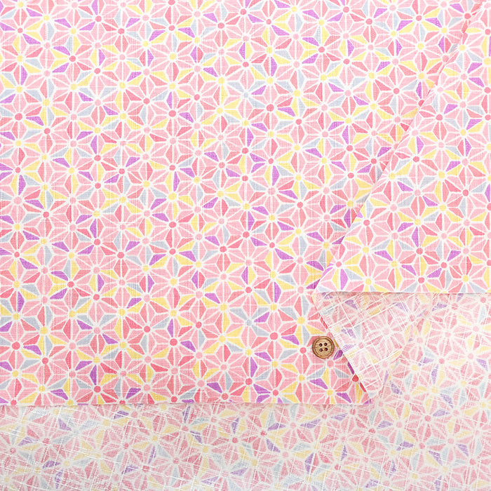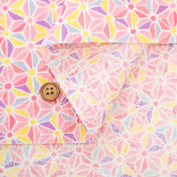 Cotton Tsumugi Shantung Print Fabric - Hemp Leaf