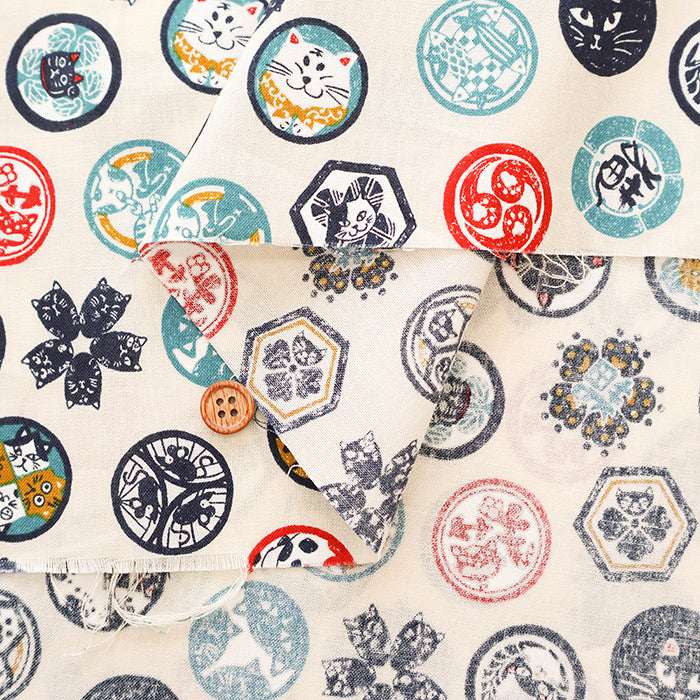 Cotton Scare Printed Fabric - Nyanko-da-Wa Family Crest Cat