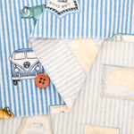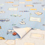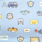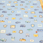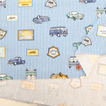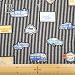 Cotton Oxford Print Fabric - Vintage cars ×Stripe