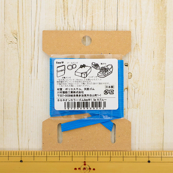 SG Neon Color Elastic Band - 6 mm Flat 1.5 m - Neon Blue