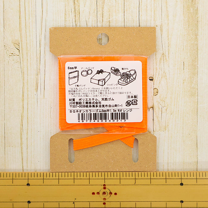 SG Neon Color Elastic Band - 6 mm Flat 1.5 m - Neon Orange
