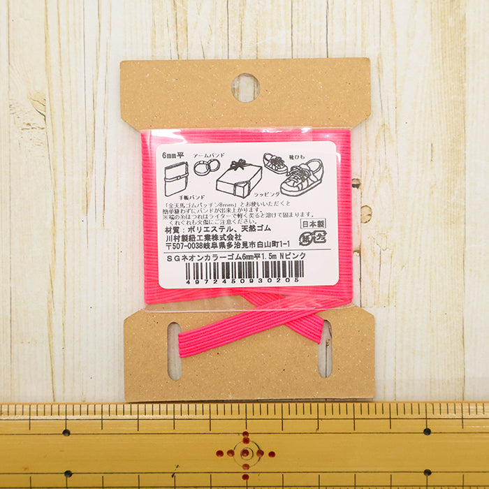 SG Neon Color Elastic Band - 6 mm Flat 1.5 m - Neon Pink