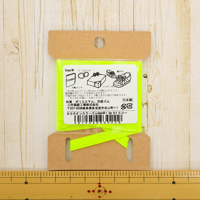 SG Neon Color Elastic Band - 6 mm Flat 1.5 m - Neon Yellow