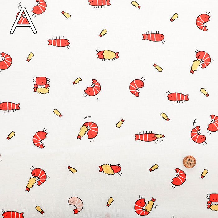 Cotton Muslin printed Fabric-Little Animal Shrimp
