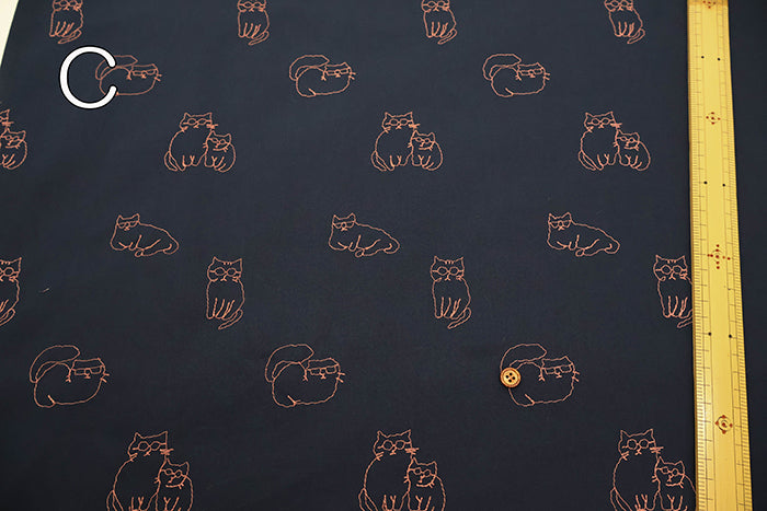 200 Thread Count Broadcloth Embroidered Fabric - Glasses Cat