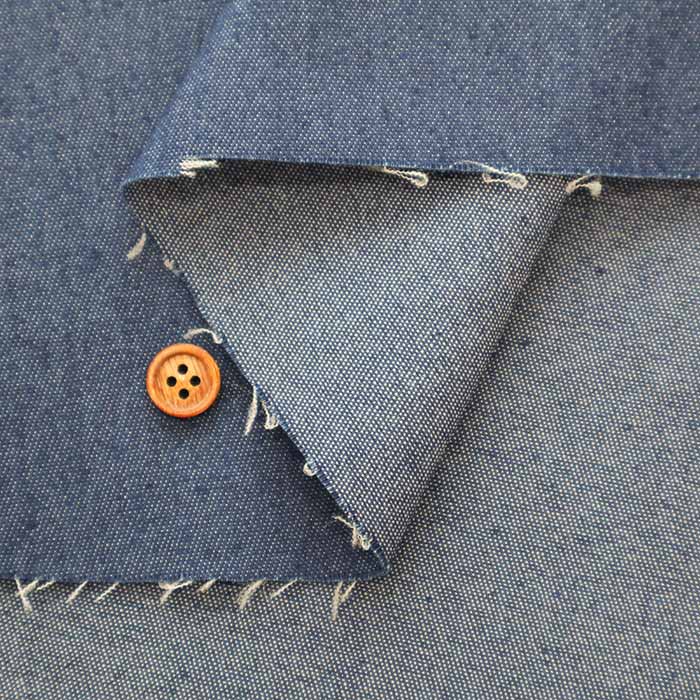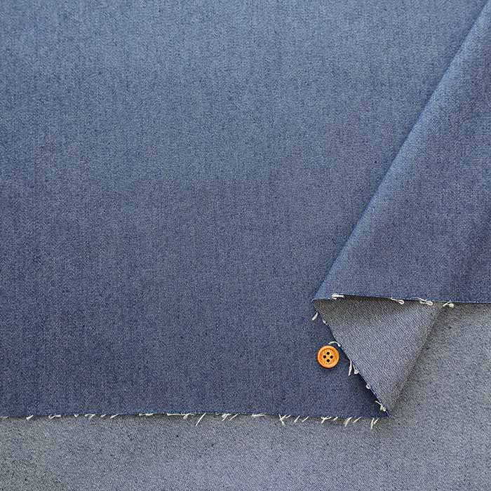 Entre Dmin, este es un denim delgado, 6 oz. Tiene un acabado ligero, por lo que recomendamos ropa como blusas, faldas y vestidos. Se puede usar en una amplia gama de artículos que no sean ropa, como productos diversos y decoraciones interiores. El denim se expresa en peso como "x oz". Cuanto mayor sea el número, más pesado y, generalmente más grueso. La tela de mezclilla de 8 a 10 oz generalmente se clasifica como tipo delgado. Se dice que el denim estándar (jeans) es de 13.5 a 14 oz. Este es un denim relativamente ligero de menos de 8 oz. *Hay una distorsión en el grano de la tela, por lo que recomendamos enderezar la tela antes de cortar. Comercial OK