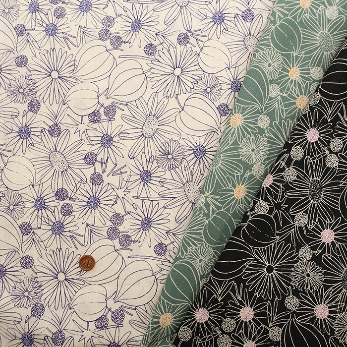 Fabrica con estampado de césped de algodón - Cristal de bayas doradas
