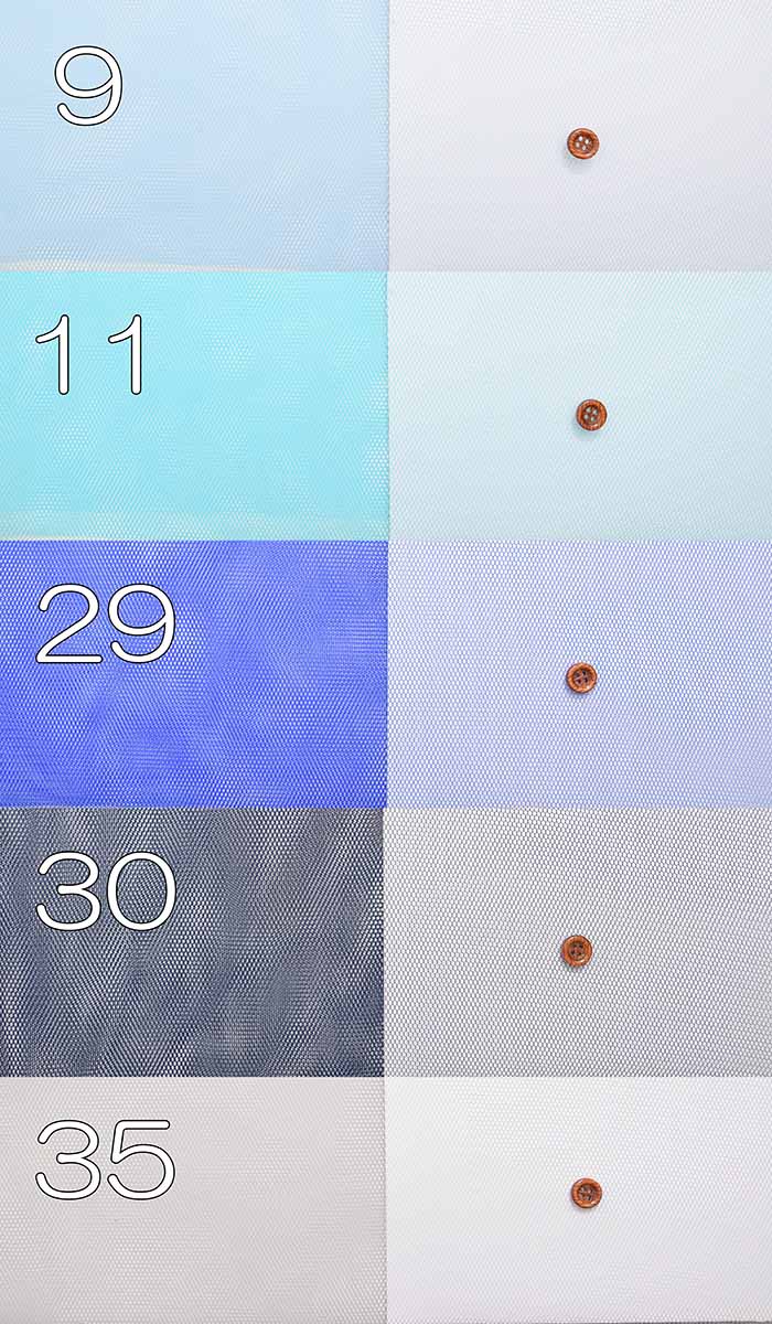 La tela de tul tiene una variedad de tensión y firmeza debido a la diferencia en el grosor del hilo, pero este es un tul con un grosor de 50 denier.