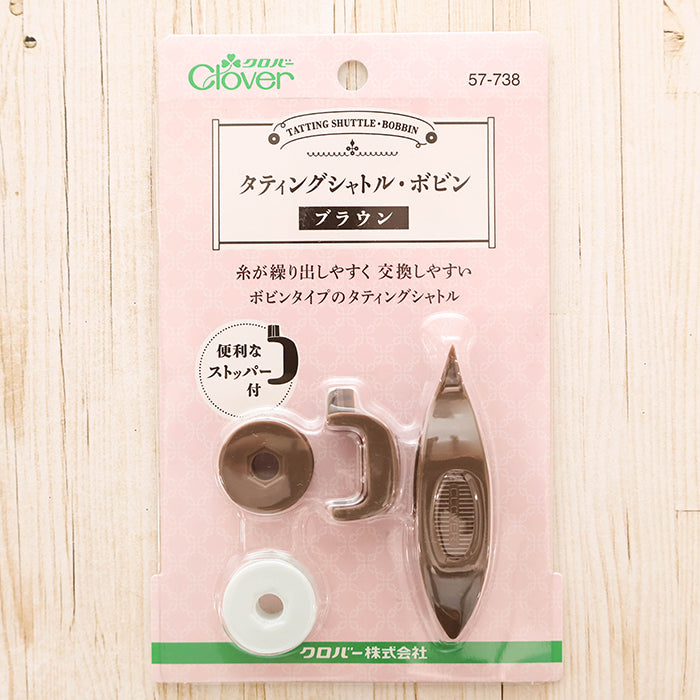 Clover Tatting Shuttle & Bobbin (Brown)
