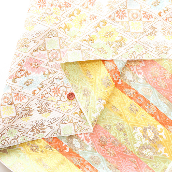 Kinran is a type of weaving in which gold and silver threads are mixed with colored threads as weft, and woven in such a way that a pattern emerges.