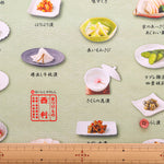 This design features a variety of pickles, including the iconic “Senmaizuke,” each illustrated with its name.