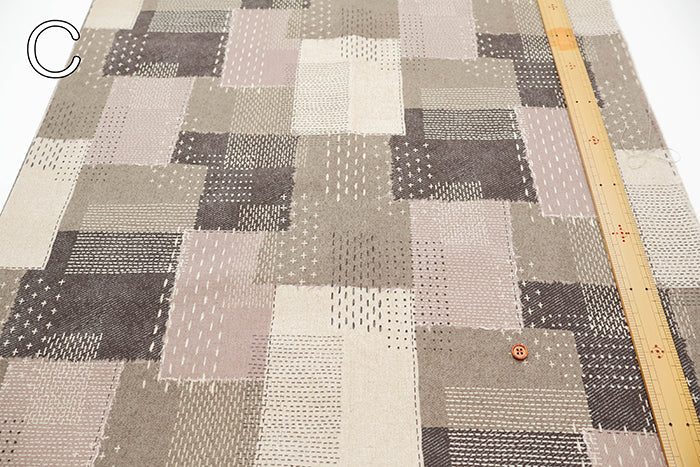 C/L Canvas Print Fabric Denim - Sashiko-style Patchwork