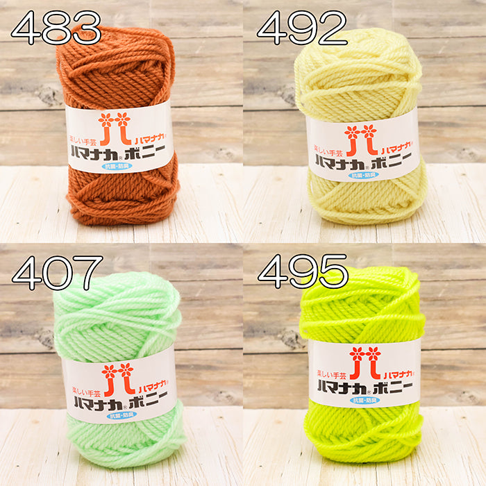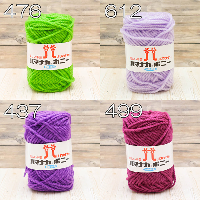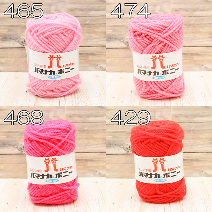 The Hamanaka Bonny series uses acrylic that is dyed at the raw material stage (top-dyed), then spun and processed for added fluffiness, resulting in a soft and voluminous yarn.